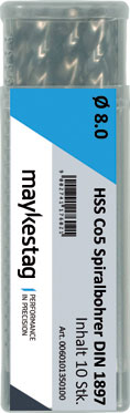 Cobalt-alloyed drills with reinforced web. Suitable for drilling stainless steel, sheet metal and spring steel.. Best for hand held operations.